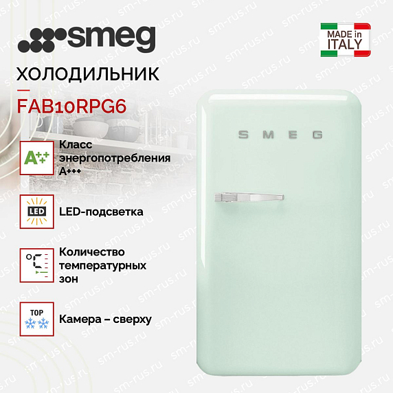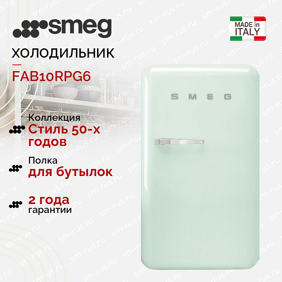 Холодильник Smeg FAB10RPG6 — это сочетание ретро-стиля 50-х годов и современных технологий. Изготовлен в Италии, он отличается превосходным качеством и надежностью, подтвержденной 24-месячной гарантией. Этот отдельностоящий прибор в пастельно-зеленом цвете с серебристой фурнитурой станет ярким акцентом в любом интерьере, придавая ему уникальный шарм винтажа.