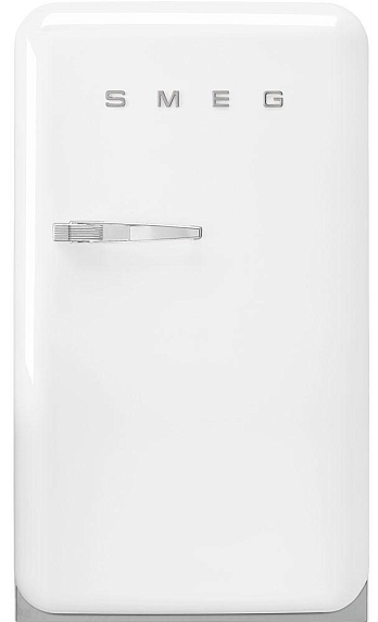 Холодильник SMEG FAB10RWH2 — двухкамерная модель белого цвета из коллекции «Стиль 50-х годов» с правым упором двери. Морозильная камера размораживается вручную, в холодильной — автоматическое оттаивание. Прибор оборудован ящиком для овощей и фруктов, полки выполнены из закаленного стекла.