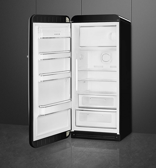 Холодильник SMEG FAB28LBL3 представлен в черном цвете и подчеркнет интерьер кухни в стиле 50-х годов. Данная модель оснащена режимом суперзаморозки, который обеспечивает качественное и быстрое охлаждение любых продуктов и предотвращает в них разрушение минералов и витаминов. LED-подсветка улучшает обзор внутреннего пространства, что повышает комфорт эксплуатации устройства. Благодаря электронному управлению необходимые настройки выставляются легко и просто.