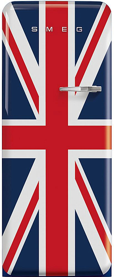 Холодильник SMEG FAB28LDUJ3 выполнен в расцветке «британский флаг» и подчеркнет дизайн кухни в стиле 50-х годов. Данная модель предусматривает в холодильном отделении 3 переставляемых полки для удобной регулировки внутреннего пространства — можно разместить любую крупногабаритную посуду. Суперзаморозка, предусмотренная в устройстве, не только гарантирует качественное и быстрое охлаждение любых продуктов, но и предотвращает в них разрушение минералов. Удобство использования также обеспечивают автоматическое размораживание, электронное управление и LED-подсветка.