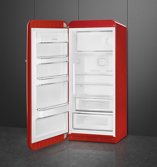 Холодильник SMEG FAB28LRD3 выполнен в красном цвете и подчеркнет интерьер в стиле 50-х годов. В холодильном отделении данная модель предусматривает 3 регулируемых полки для удобного использования внутреннего пространства – можно разместить любые продукты и даже крупногабаритную посуду. При случайном отключении электричества прибор способен сохранять холод в течение 12 часов. Комфорт эксплуатации также обеспечивают автоматическое размораживание и электронное управление.