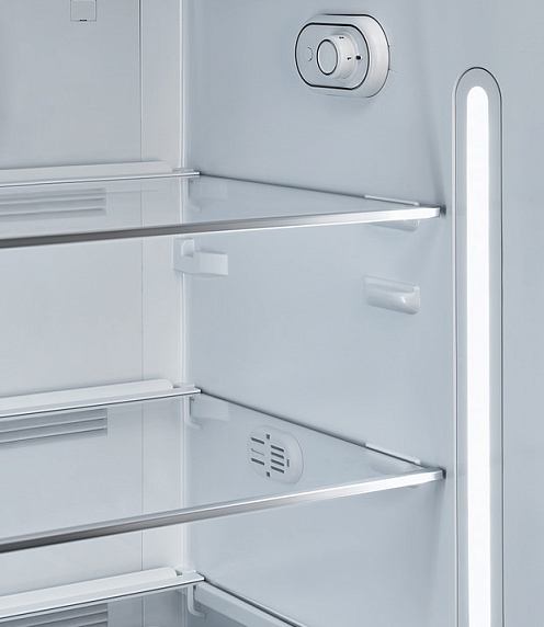 Холодильники — одни из тех приборов, которые постоянно подключены к сети. Поэтому компания Smeg следит за энергопотреблением моделей. Класс A+++ означает, что устройство наиболее рационально расходует ресурсы и потребляет на 30% меньше, чем класс A.