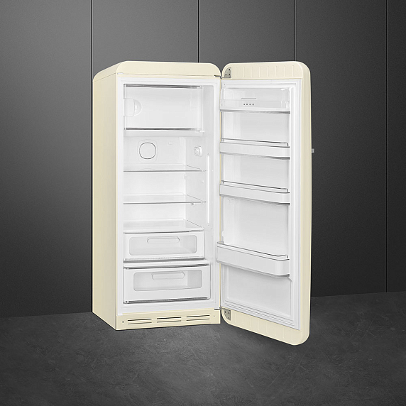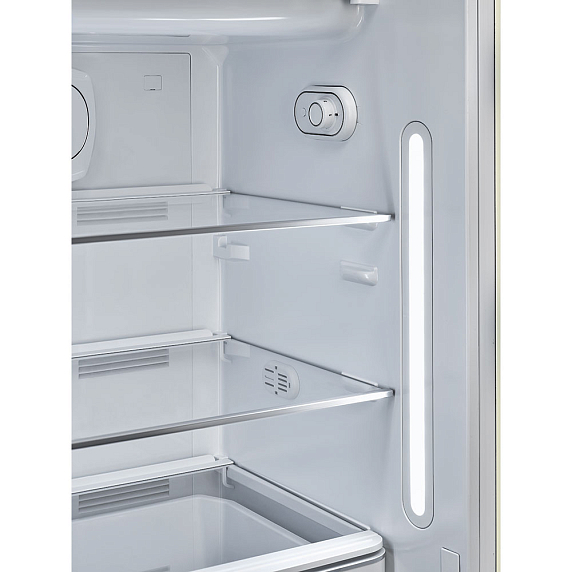 Холодильник SMEG FAB28RCR3 представлен в кремовом цвете и дополнит интерьер в стиле ретро. Вентилятор, предусмотренный в этой модели, распределяет температуру внутри холодильной камеры для качественного охлаждения продуктов. Электронное управление позволяет настроить все нужные параметры в работе устройства легко и быстро. Комфорт эксплуатации гарантируют автоматическое размораживание и LED-освещение.