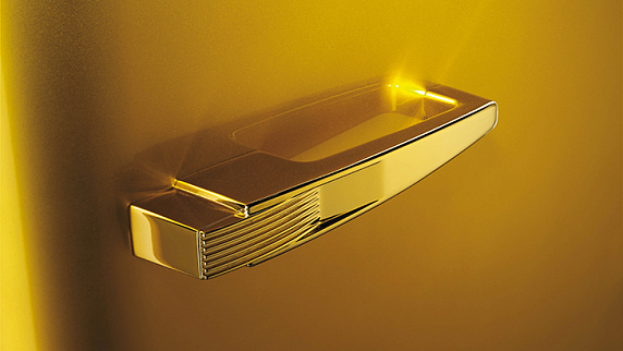 Отдельно стоящий холодильник SMEG FAB28RDG выполнен в эксклюзивном золотом цвете, а логотип украшен кристаллами SWAROVSKI, нанесенными вручную, что подчеркивает уникальность модели. Переставляемые стеклянные полки обеспечат комфортное размещение крупногабаритных продуктов и упаковок. Регулируемый термостат гарантирует поддержание постоянной температуры в холодильной камере для оптимального хранения. Режим суперзаморозки используется для быстрого замораживания большого количества продуктов, при этом создаваемая в морозильной камере низкая температура также препятствует размораживанию уже хранящихся там продуктов.