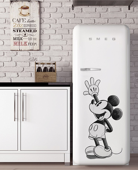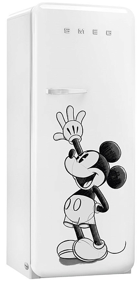 Холодильник SMEG FAB28RDMM4 — это необычная модель, относящаяся к коллекции "Стиль 50-х годов и имеющая на фронтальной поверхности изображение Микки Мауса. Для удобной эксплуатации предусмотрено электронное управление, есть внутренне LED освещение. В случае, если дверца прибора будет оставлена открытой или закрыта, но неплотно, то акустический и визуальный сигнал оповестит пользователя об этом.