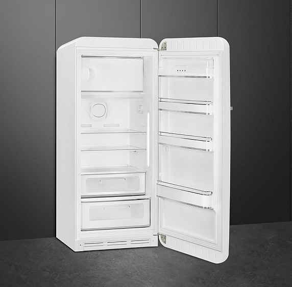Холодильники — одни из тех приборов, которые постоянно подключены к сети. Поэтому компания Smeg следит за энергопотреблением моделей. Класс A+++ означает, что устройство наиболее рационально расходует ресурсы и потребляет на 30% меньше, чем класс A.