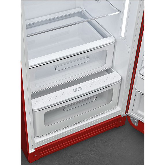 Холодильник SMEG FAB28RRD3 выполнен в красном цвете. Функция «суперзаморозка» позволяет заморозить продукты, помещенные в камеру, быстро и качественно. При этом в них сохранятся все витамины и минералы. Данная модель комплектуется вентилятором в холодильном отделении, который распределяет температуру для равномерного охлаждения готовых блюд. Комфорт эксплуатации гарантируют автоматическое размораживание, электронное управление и внутреннее LED-освещение.