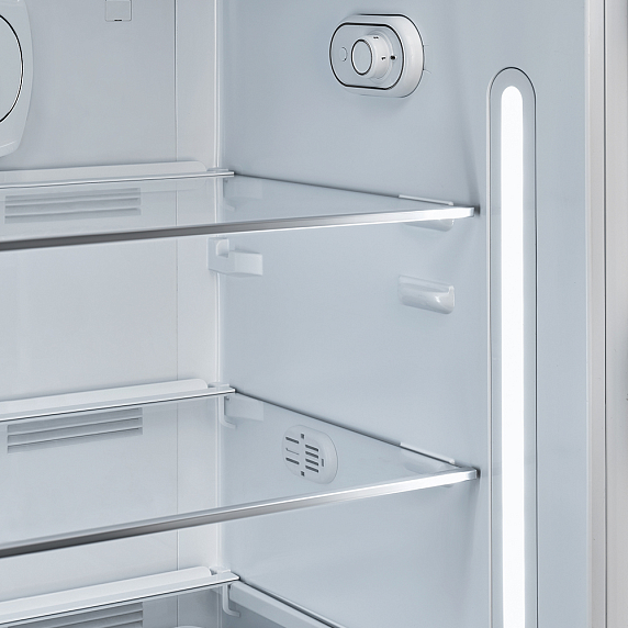 Холодильники — одни из тех приборов, которые постоянно подключены к сети. Поэтому компания Smeg следит за энергопотреблением моделей. Класс A+++ означает, что устройство наиболее рационально расходует ресурсы и потребляет на 30% меньше, чем класс A.