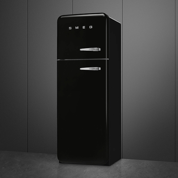 Холодильник SMEG FAB30LBL3 — двухдверная модель из коллекции «Стиль 50-х годов» черного цвета. Холодильная камера размораживается автоматически. Стеклянные полки можно переставлять по высоте, вместительный ящик предназначен для овощей и фруктов. Прибор оснащен зоной свежести и светодиодным освещением.
