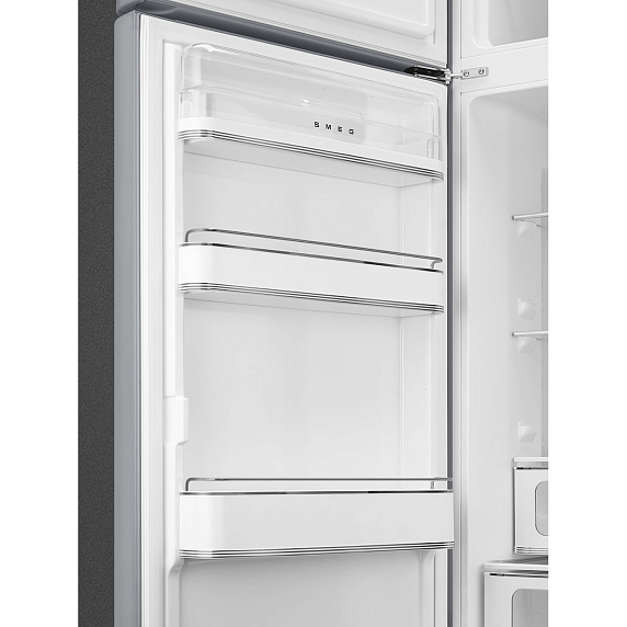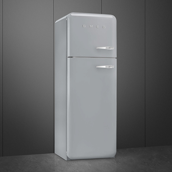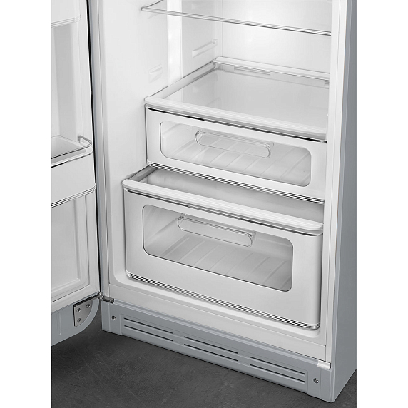 Отдельностоящий двухдверный холодильник SMEG FAB30LSV3 в серебристом цвете имеет общий объем 298 л. Оснащен зоной сохранения свежести, с помощью которой можно увеличить срок хранения скоропортящихся продуктов. В холодильном отделении предусмотрена функция автоматического размораживания. Уровень шума — 31 дБ.
