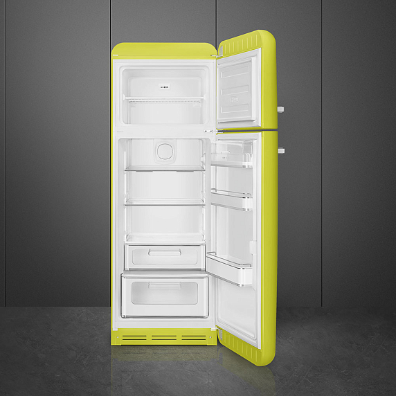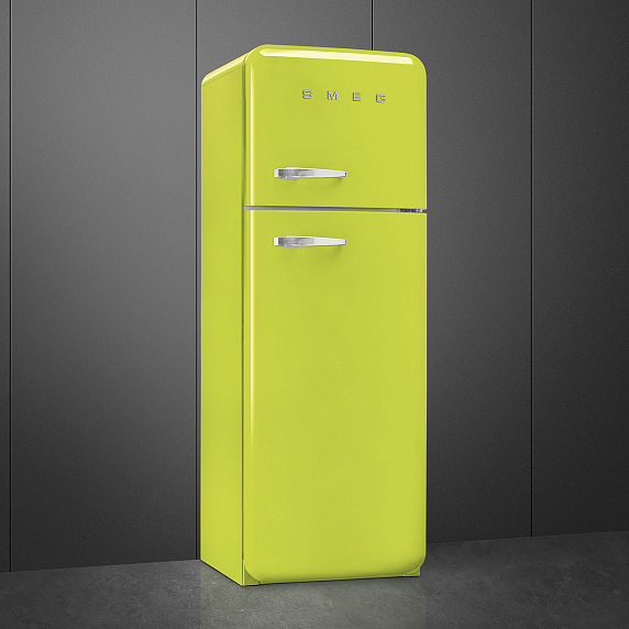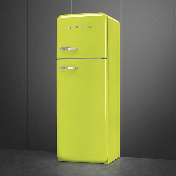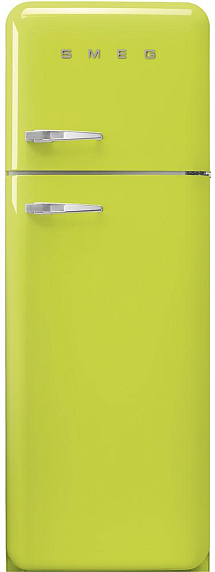 Отдельностоящий двухдверный холодильник SMEG FAB30RLI3 в цвете лайма имеет объем 298 л. В холодильном отделении имеется функция автоматического размораживания. Вентилятор способствует равномерному распределению температуры внутри камеры. Уровень шума от работы прибора — 31 дБ.