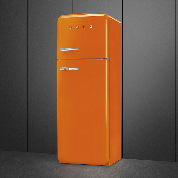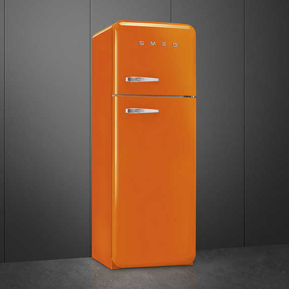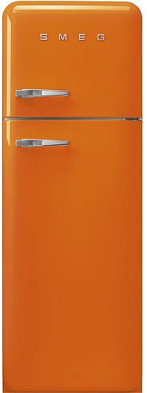 Отдельностоящий двухдверный холодильник SMEG FAB30ROR3 в оранжевом цвете имеет зону сохранения свежести, обеспечивающую более длительное хранение скоропортящихся продуктов. Оснащен функцией автоматического размораживания в холодильном отделении. Вентилятор помогает температуре распределяться равномерно.