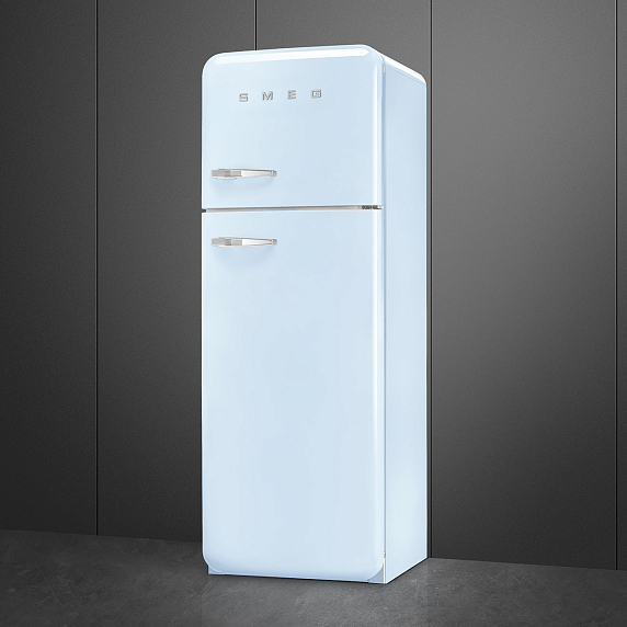 Холодильник SMEG FAB30RPB3 — модель из коллекции «Стиль 50-х годов» пастельно-голубого цвета. Прибор оснащен автоматическим размораживанием холодильной камеры и светодиодным освещением. В ящике зоны свежести температура ниже, поэтому продукты сохраняются дольше. Полки из закаленного стекла можно переставлять по высоте.