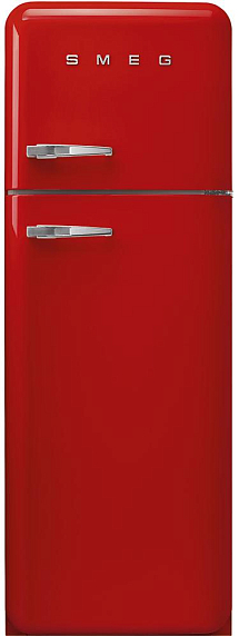 Холодильник SMEG FAB30RRD3 — модель из коллекции «Стиль 50-х годов» красного цвета с серебристой фурнитурой и большой ручкой. Дверца открывается направо. Холодильная камера размораживается автоматически. В ящике зоны свежести поддерживается температура ниже, чем в остальном отделении, поэтому продукты сохраняются дольше.