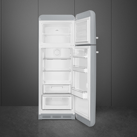 Холодильник SMEG FAB30RSV3 — модель из коллекции «Стиль 50-х годов» серебристого цвета с большой ручкой. Благодаря автоматическому размораживанию холодильной камеры прибор удобен в эксплуатации. В отличие от моделей прошлого поколения холодильная зона оснащена зоной свежести, в которой продукты сохраняются дольше.