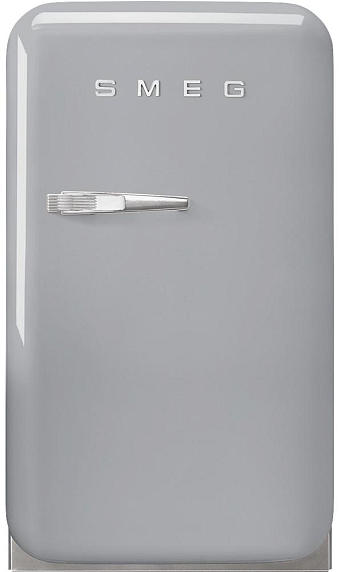 Отдельностоящий минибар Smeg FAB5RSV3 выполнен в серебристом цвете. Имеет регулируемый термостат, который позволяет выставить температуру от 4°С до 10°С. Оснащен полезной функцией автоматического размораживания. Уровень шума — 40 дБ.