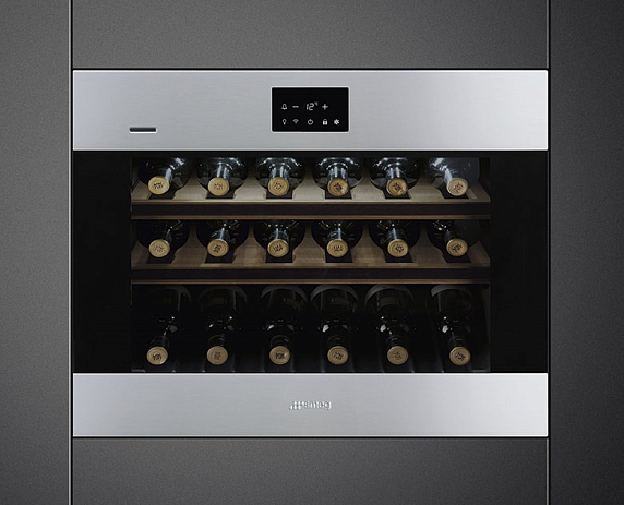 Встраиваемый холодильный шкаф для вина SMEG CVI318RWX2 отличается лаконичным дизайном. Вмещает до 18 бутылок. Имеет покрытие, предохраняющее от отпечатков пальцев. LED-дисплей и сенсорное управление обеспечивают простую и приятную эксплуатацию. Регулируемый термостат позволяет выставить температуру от 5ºС до 20ºС, стекло с защитой от УФ-излучения гарантирует идеальные условия хранения вина.