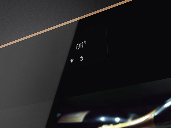 Холодильный шкаф для вина Smeg CVI618LWNR2 выполнен в черном цвете с медным профилем и подчеркнет дизайн кухни вместе с другой техникой из коллекции Dolce Stil Novo. Модель комплектуется двумя съемными деревянными полками на телескопических направляющих, что позволяет не только удобно регулировать внутреннее пространство камеры, но и комфортно помещать и доставать бутылки. С помощью электронной регулировки температуры и LED-дисплея можно подобрать оптимальные условия хранения для любых сортов вин, а стекло с защитой от УФ-излучения надолго сохранит их качество.