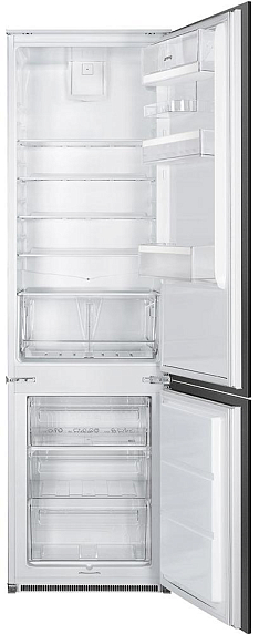 Холодильник Smeg C3192F2P — классическая двухкамерная модель с морозилкой внизу, предназначенная для встраивания. Полностью скрываясь за фасадами кухонного гарнитура, он не только способен вписаться в интерьер любого стиля, но и работает тише, благодаря дополнительной прослойке мебельных щитов. Общий объем его составляет 289 л, этого достаточно для стандартной семьи из 3-4 человек и дает возможность запасать продукты впрок.