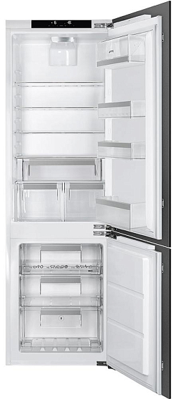 Smeg CD7276NLD2P — встраиваемый холодильник с сенсорным управлением. Морозильная камера модели работает по технологии No-frost, которая препятствует образованию наледи и инея на внутренних стенках. Холодильное отделение оборудовано переставляемыми полками, зоной свежести и ящиками для хранения овощей и фруктов. Высокую энергоэффективность подтверждает класс А++.