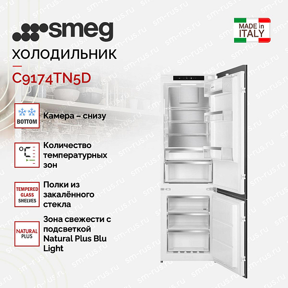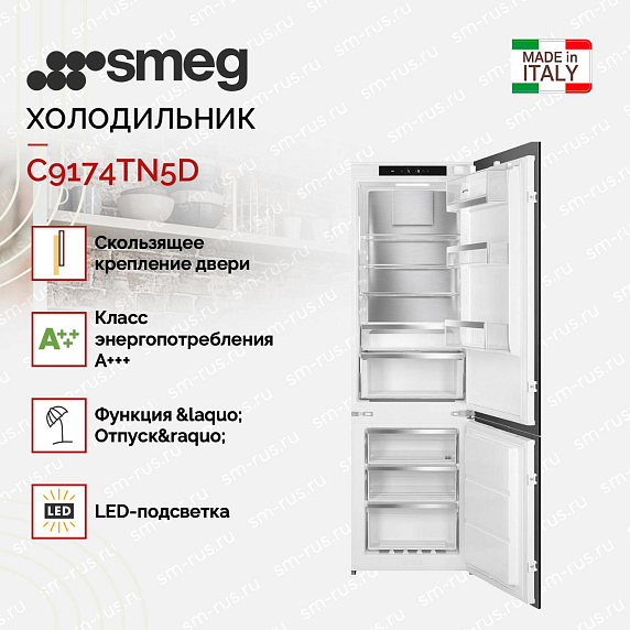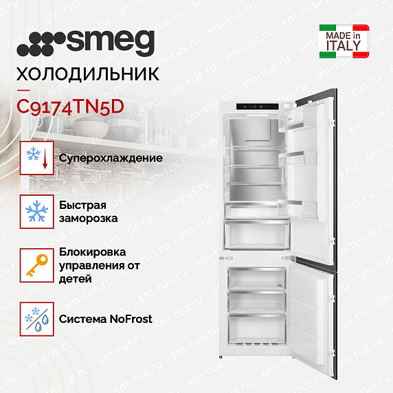 Встраиваемый холодильник SMEG C9174TN5D — это итальянская бытовая техника, которая сочетает в себе стиль, функциональность и высокое качество. Белоснежный корпус классического форм-фактора из коллекции основной линейки идеально впишется в любой интерьер, добавив ему свежести и элегантности.