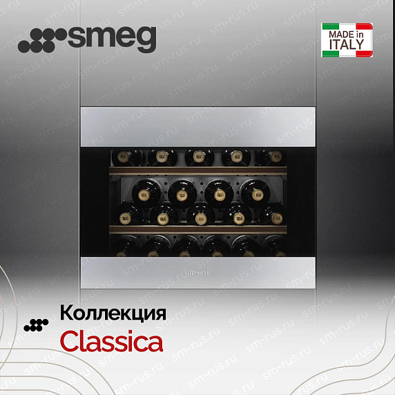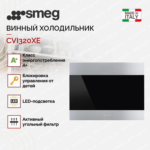 Встраиваемый холодильный шкаф для вина Smeg CVI320XE - элегантный и сдержанный дизайн этой модели создан для тех, кто ценит классические линии и премиальные материалы: комбинация чёрного стекла и нержавеющей стали формирует современный, но вневременной образ, который легко интегрируется в любую кухонную композицию. Благодаря обработке против отпечатков пальцев фасад сохраняет аккуратный внешний вид даже при активной эксплуатации, а тонкий профиль и аккуратно продуманная лицева часть позволяют установить прибор заподлицо с мебелью, добиваясь эффекта единой поверхности. Коллекция Classica подчёркивает внимание к деталям — деликатная отделка, минималистичные элементы управления и качественные материалы создают впечатление предмета интерьера, а не просто техники.