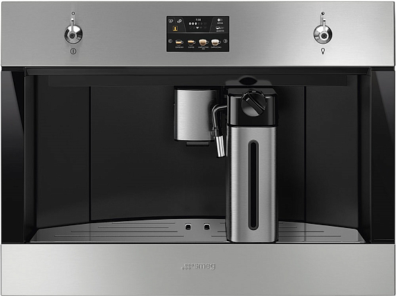 Кофемашина Smeg CMS4303X из коллекции Classica выполнена в цвете «Нержавеющая сталь». Покрытие против отпечатков пальцев максимально упрощает уход за внешним видом устройства. Управление осуществляется с большого цветного TFT-дисплея, с помощью которого можно выбрать один из 13 запрограммированных напитков, настроить крепость, количество или температуру кофе или настроить пользовательский профиль для каждого из членов семьи.