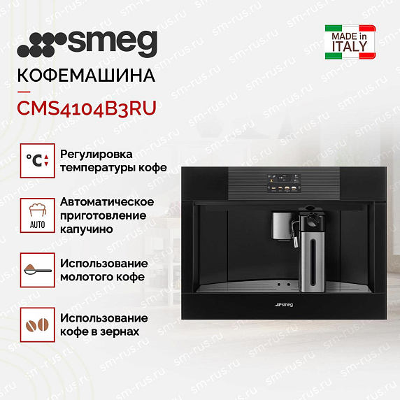 Встраиваемая кофемашина SMEG CMS4104B3RU — это воплощение итальянского стиля и качества. Модель относится к коллекции Linea и имеет элегантный черный цвет, который легко впишется в любой интерьер. Компактные размеры (ширина 59.5 см, высота 45.5 см, глубина 47 см) позволяют легко интегрировать устройство в кухонный гарнитур. Телескопические направляющие с системой SoftClose обеспечивают плавное и тихое открывание и закрывание машины. Многоязычный цветной TFT дисплей (4.3″) и сенсорные переключатели делают использование кофемашины удобным и интуитивно понятным.