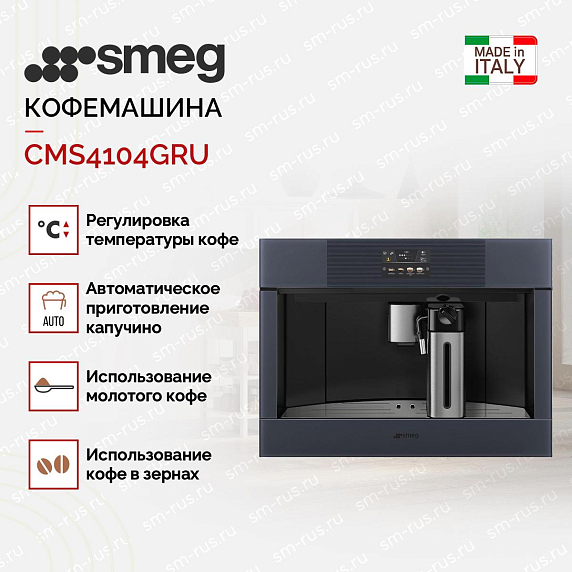 Кофемашина Smeg CMS4104GRU оснащена функцией удаления накипи, которая убирает избыточные отложения известняка в резервуаре и обеспечивает нормальную работу изделия. 5 уровней регулировки интенсивности кофе позволяет регулировать количество молотых зерен в любом цикле настаивания. Можно запрограммировать автоматическое включение прибора, чтобы он был готов к использованию к необходимому времени.