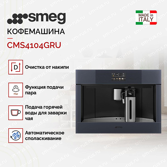 Умные кофемашины Smeg способны сами ухаживать за собой, в частности, осуществлять автоматическое споласкивание рабочих поверхностей после приготовления напитка. Несколько автоматических ополаскиваний с паузами входит и в цикл удаления накипи.