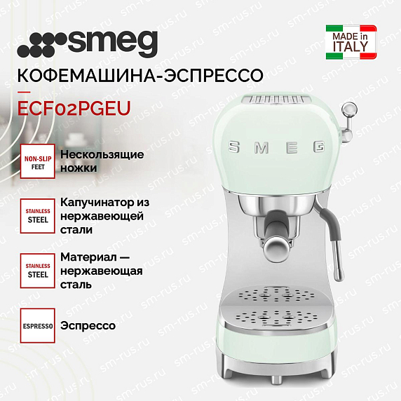 Покупая кофемашину Espresso Smeg ECF02PGEU, вы получаете не только качественное устройство для приготовления кофе, но и стильный элемент декора, который подчеркнет индивидуальность вашей кухни.