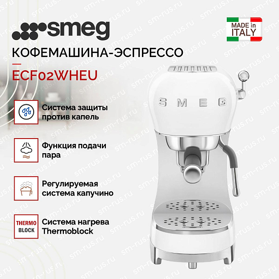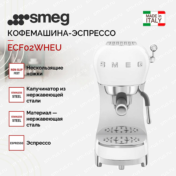 Кофемашина Espresso Smeg ECF02WHEU — это стильное и функциональное устройство, созданное в лучших традициях итальянского дизайна. Изящная форма, подчеркнутая белым цветом модели, воплощает в себе дух 50-х годов, придающий интерьеру особую атмосферу. Нержавеющая сталь, использованная в производстве корпуса, обеспечивает долговечность и надежность устройства, а также подчеркивает его элегантность.