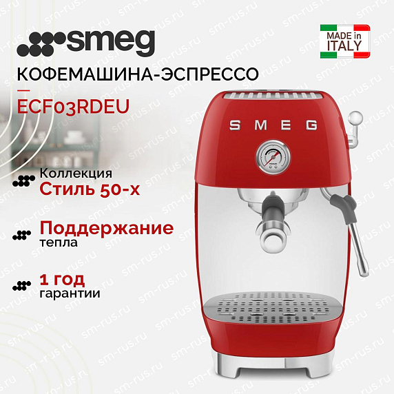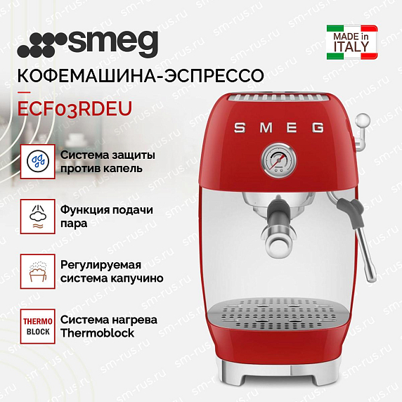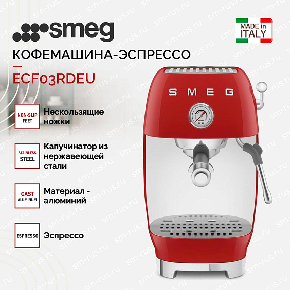 Кофемашина Espresso Smeg ECF03RDEU — яркий представитель коллекции «Стиль 50‑х годов», в котором винтажный характер сочетается с современными решениями для приготовления напитков. Эффектный красный корпус из алюминия в сочетании с пластиком привлекает внимание и служит заметным декоративным акцентом на любой рабочей поверхности. Компактные габариты (36.4×20.5×29.5 см) позволяют разместить модель даже в ограниченном пространстве, а продуманная конструкция предусматривает поддон для сбора капель и нескользящие ножки для устойчивости. Объём съёмного резервуара составляет 1.4 л, достаточно для одного-двух последовательных циклов, при этом панель управления представлена удобными кнопками для быстрого выбора режимов.