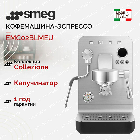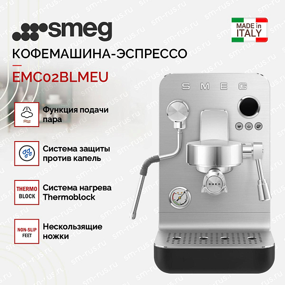 Рожковая кофемашина-эспрессо Smeg EMC02BLMEU — это высококачественная бытовая техника, произведенная в Италии. Элегантный черный цвет корпуса, выполненного из нержавеющей стали и пластика, придаст стиля любой кухне. Рукоятка рычага изготовлена из прочного материала ZAMA, что гарантирует долгий срок службы аппарата.