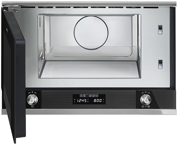 Микроволновая печь Smeg MP122N1 — стильная и практичная. Внутренней камеры объемом 22 л хватит, чтобы разогреть пищу на большую семью или запечь курицу целиком. Элегантный черный цвет делает ее эффектной и красивой, а фурнитура цвета нержавеющей стали подчеркивает насыщенность оттенка, при этом прибор встраивается в кухонный гарнитур, становясь с ним единым целым и обеспечивая гармоничность дизайна. Керамическое основание без вращающегося поддона обеспечивает большую вместительность и возможности приготовления.