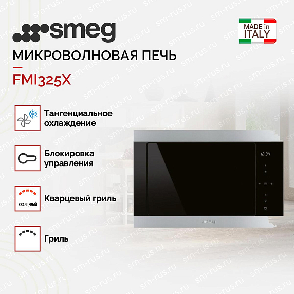 Встраиваемая микроволновая печь Smeg FMI325X — это стильный и функциональный прибор, который станет незаменимым помощником на вашей кухне. Она выполнена в современном стиле, легко впишется в любой интерьер. Оснащена сенсорными переключателями — ручки и кнопок нет, поэтому модель смотрится более аккуратно и стильно, а поверхность легче отмывать от загрязнений. При этом настраивать мощность и задавать другие параметры очень легко.