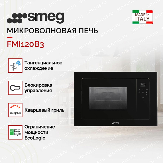 Встраиваемая микроволновая печь Smeg FMI120B3 — это не только функциональная, но и красивая техника для вашей кухни. Модель, выполненная в черном цвете, станет идеальным дополнением к интерьеру, оформленному в современном стиле. Благодаря двойному остеклению двери, вы можете быть уверены в своей безопасности и не бояться получить ожоги. Корпус не нагревается даже во время использования гриля.