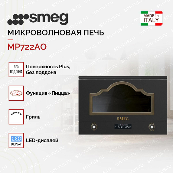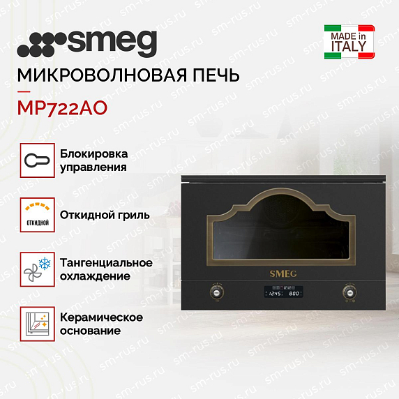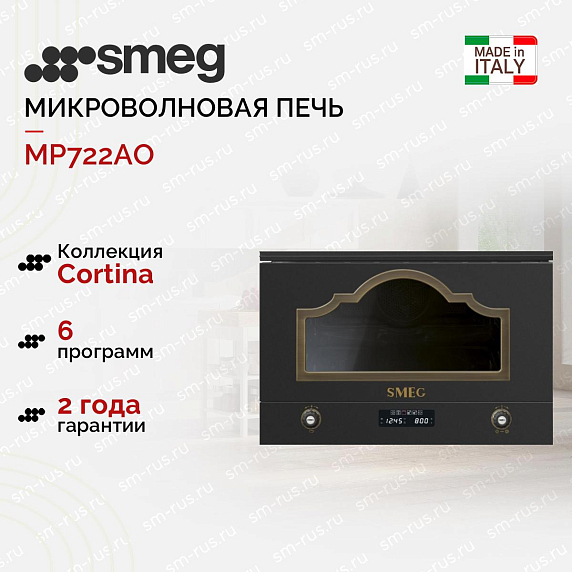 Встраиваемая микроволновая печь Smeg MP722AO – это высококачественное кухонное оборудование, сочетающее в себе элегантность и функциональность. Произведенная в Португалии, эта печь относится к коллекции Cortina и имеет стильный антрацитовый цвет корпуса и латунную фурнитуру, что придает ей особый шик и благородство.