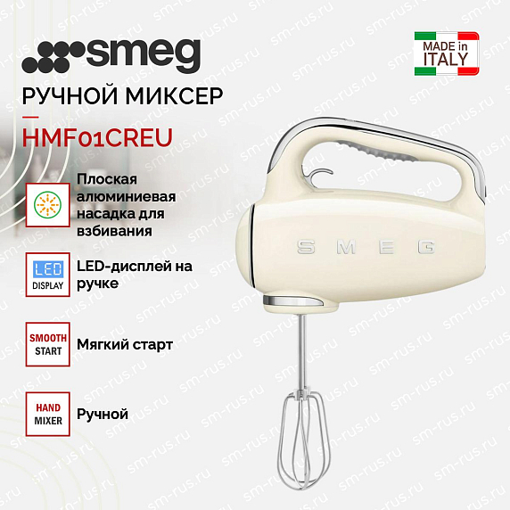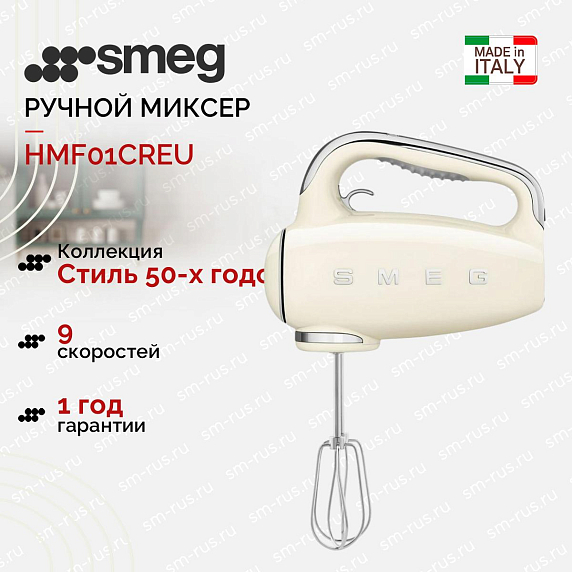 В общем, ручной миксер Смег HMF 01 CREU — это сочетание стиля, качества и функциональности. Он станет незаменимым помощником на любой кухне и принесет удовольствие от процесса приготовления пищи.
