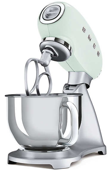 Планетарный миксер SMEG SMF02PGEU выполнен в пастельном зеленом цвете. Корпус изготовлен из литого алюминия. Предусмотрены 10 регулируемых скоростей. Безопасность и комфорт эксплуатации обеспечивают нескользящие ножки.