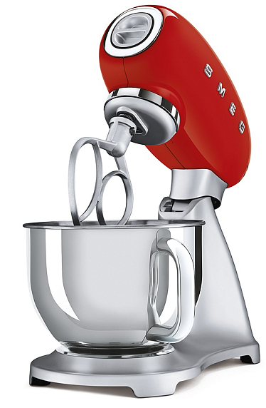 Планетарный миксер SMEG SMF02RDEU имеет объем чаши 4.8 л. Корпус изготовлен из литого алюминия. Предусмотрены 10 регулируемых скоростей. Безопасность и комфорт эксплуатации обеспечивают нескользящие ножки.