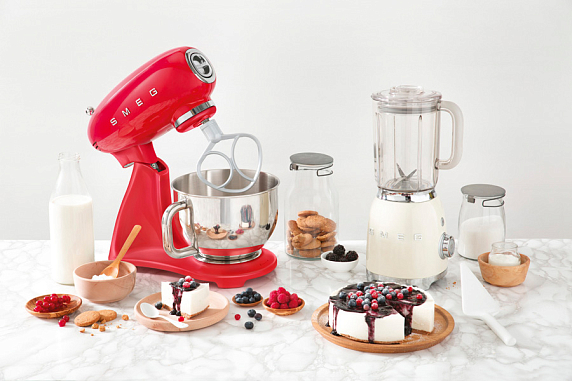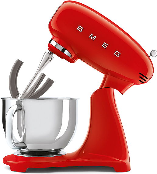Планетарный миксер Smeg SMF03RDEU — удобная модель из коллекции Style 50s в красном цвете. Дизайн отмечен наградами iF Design Award и Chicago Athenaeum: Museum of Architecture and Design.