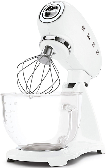 Планетарный миксер Smeg SMF13WHEU — удобная модель из коллекции Style 50s в белом цвете. Дизайн отмечен наградами iF Design Award и Chicago Athenaeum: Museum of Architecture and Design.