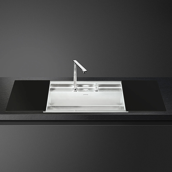 Мойка Smeg VQMX79N2 серии Linea из нержавеющей стали с матовым покрытием дополнена двумя разделочными досками из закаленного стекла черного цвета. В комплекте поставки корзинчатый вентиль, сифон и уплотнительная лента. Модель не оборачивания.