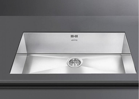 Для удобства используется термин «мойка устанавливается в базу». Есть несколько вариантов: 30 см, 45 см, 60 см, 80 см, 90 см. Также компания Smeg выпускает угловые мойки 105×105 см и 90×90 см.
