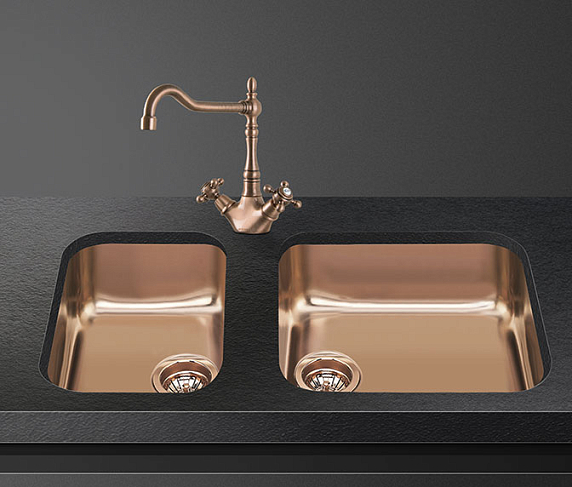 Мойка Smeg UM30RA2 представлена в цвете «медь» и выполнена из нержавеющей стали толщиной 0.7 мм, что делает модель прочной и долговечной. Внешний вид защищен PVD-покрытием, которое устойчиво к загрязнениям и механическим повреждениям. Чашу небольшого размера можно использовать как дополнительную, в ней удобно мыть фрукты и овощи.