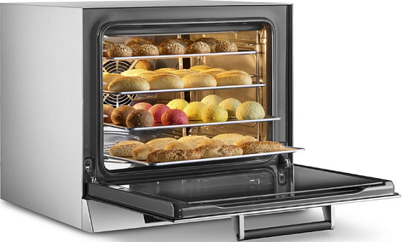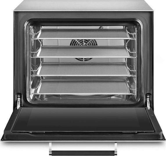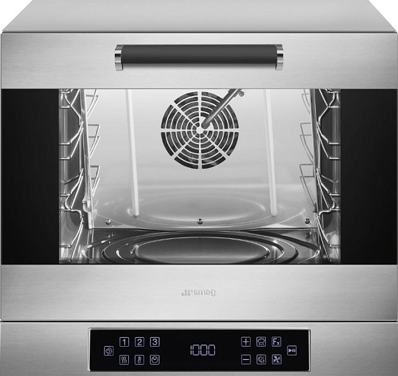 Конвекционная печь Smeg ALFA43XE1HDS — многофункциональное профессиональное устройство с пароувлажнением. Корпус из нержавеющей стали, внутренняя камера покрыта эмалью Ever Clean, которая легко отмывается от загрязнений. Многоступенчатое приготовление с предварительным разогревом сделает эксплуатацию комфортной. LCD дисплей позволит следить за текущими настройками. В комплекте прилагается 4 алюминиевых противня.