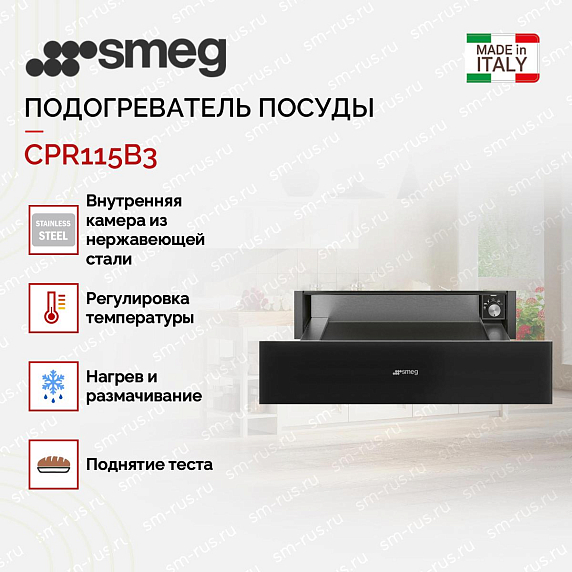 Подогреватель посуды Smeg CPR115B3 из коллекции Linea выполнен в черном цвете. Модель предназначен для разогрева посуды и пищи, а также поддержки блюд в теплом состоянии.