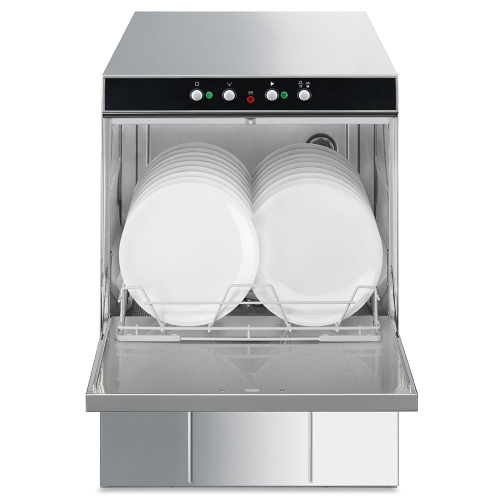 Посудомоечная машина с фронтальной загрузкой Smeg UD500D выполнена в стальном корпусе с одинарными стенками и характеризуется электромеханическим типом управления. Модель предназначена для мытья тарелок, чашек, стаканов, столовых приборов, а также для противней и гастроёмкостей GN 1/1. Для продления эксплуатационного срока устройства предусмотрена встроенная система самодиагностики с оповещением в случае нахождения неисправности.