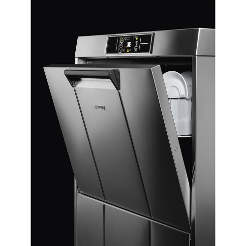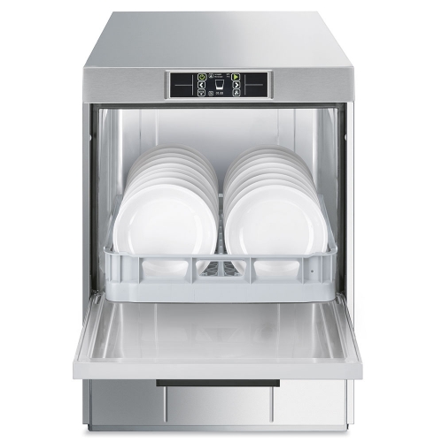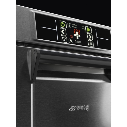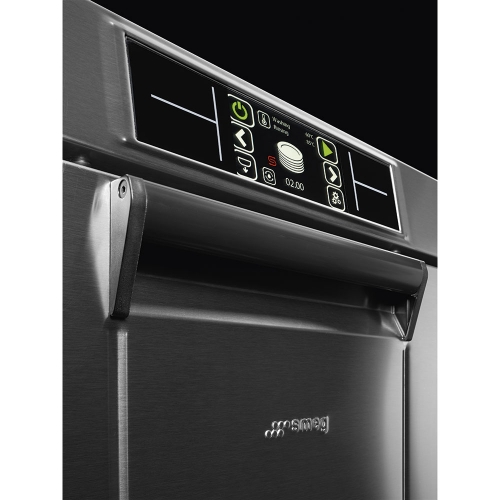 Профессиональная посудомоечная машина с фронтальным типом загрузки Smeg UD520D предназначена для мытья всех типов посуды: стаканов, чашек, тарелок, столовых приборов. Модель поддерживает технологию мягкого старта насоса, что исключает возможность повреждения хрупких фужеров и блюдец сильным напором воды. Сбалансированная дверца с двойной стенкой обеспечивает дополнительную шумоизоляцию в процессе работы устройства.